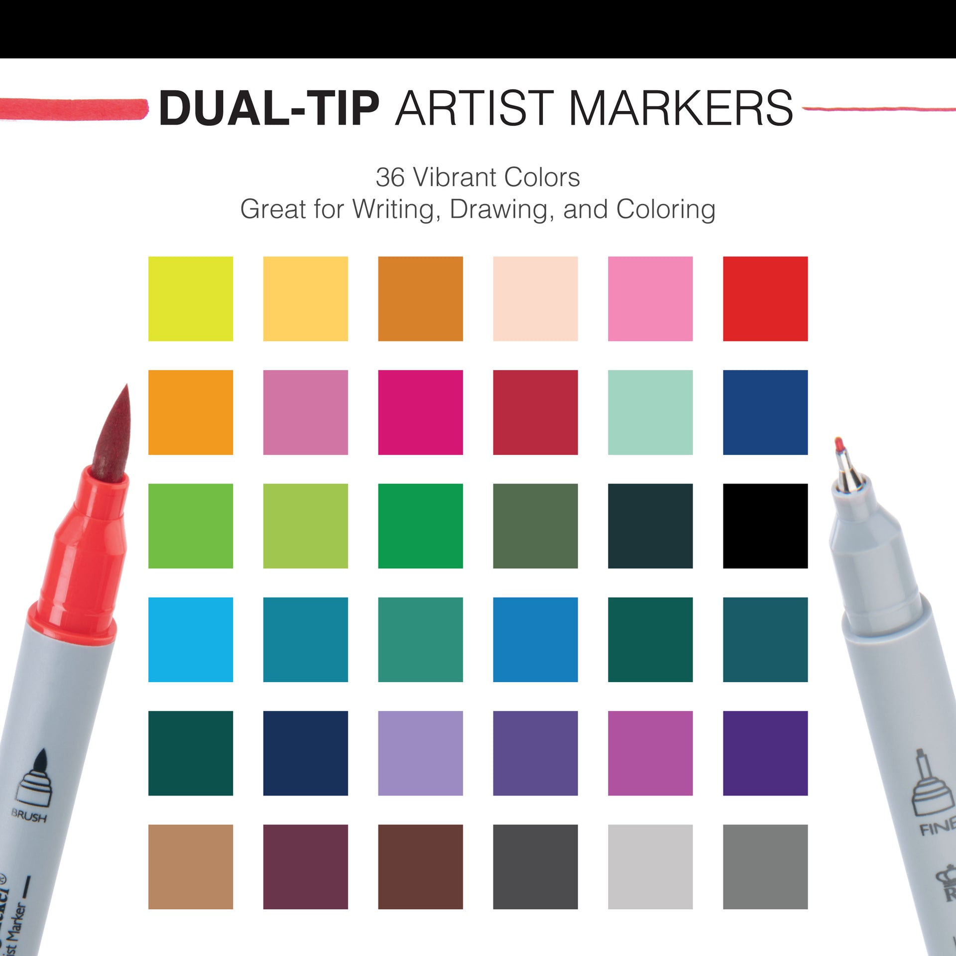 MARK-2203 | 36pc Fineliner and Brush Dual-Tip Artist Markers